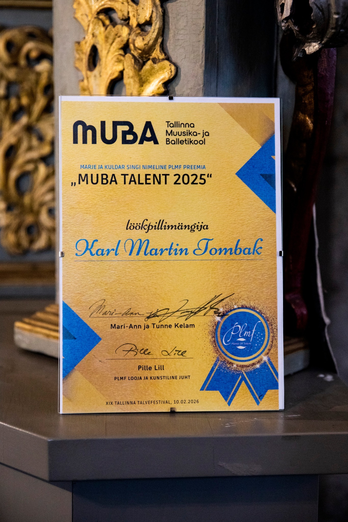 XIX Tallinna Talvefestivali "Tõsta pilk ja ava süda" avakontserdil "Pidulikud trompetihelid" Rootsi-Mihkli kirikus 10. veebruaril, anti üle Mari-Ann ja Tunne Kelami poolt Marje ja Kuldar Singi nimeline PLMF preemia "MUBA TALENT 2025". Tiitli pälvis Tallinna Muusika- ja Balletikooli õpilane, löökpillimängija Karl Martin Tombak. Preemia on loodud 2023. aastal Tunne Kelami...